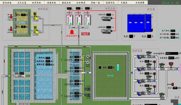 ⑶ 可集中控制整个水厂的水工艺的全自动历程,,,,,,好比:加药、加氯和过滤池等水处置惩罚环节,,,,,,使水处置惩罚越发准确和完整,,,,,,同时能够自动对整个处置惩罚历程和处置惩罚情形举行监测和控制;;;